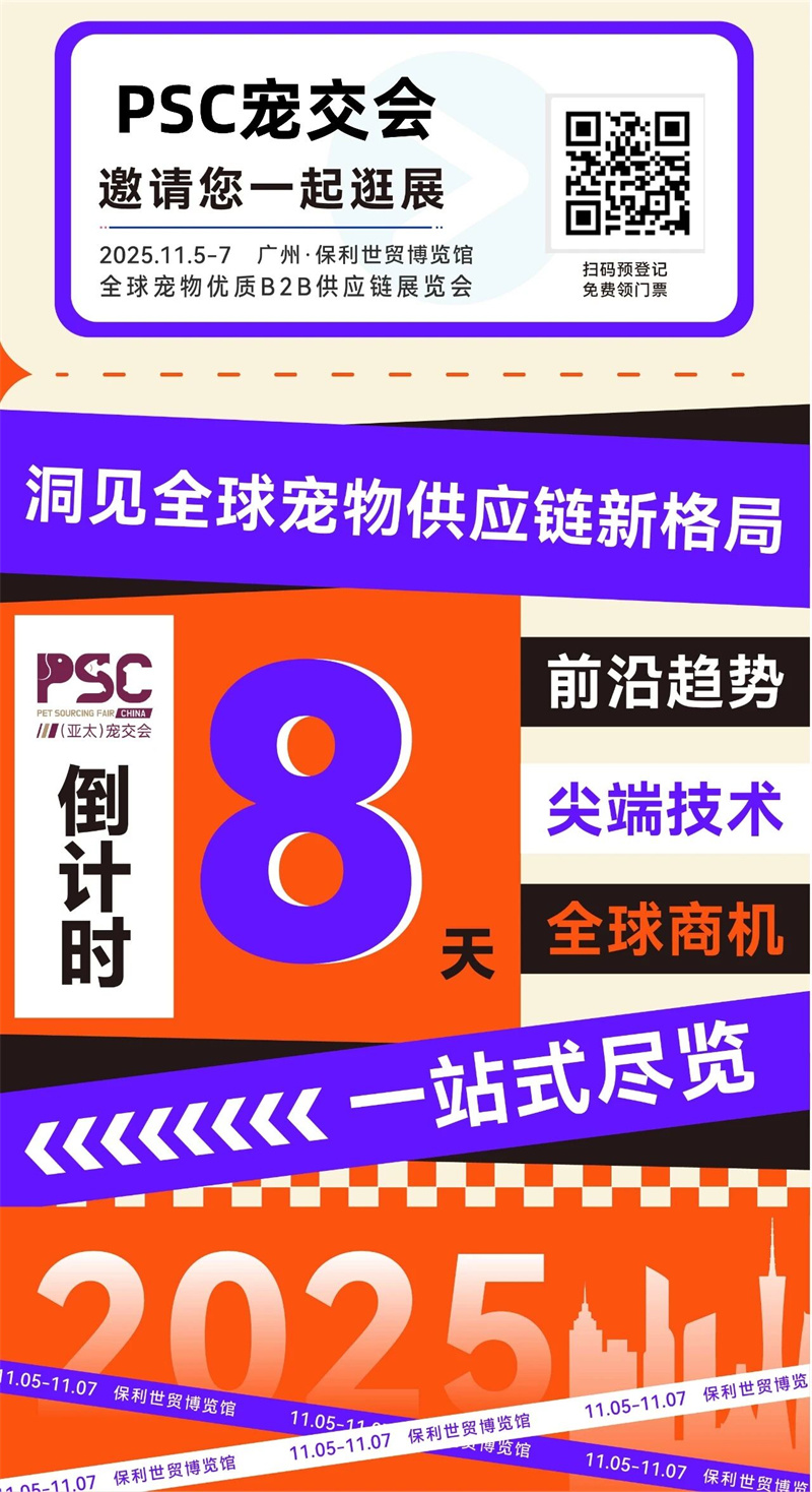 Осталось всего 8 дней до 2-й ярмарки домашних животных PSC, которая пройдет с 5 по 7 ноября 2025 года в Гуанчжоу Poly World Trade Center Expo!
